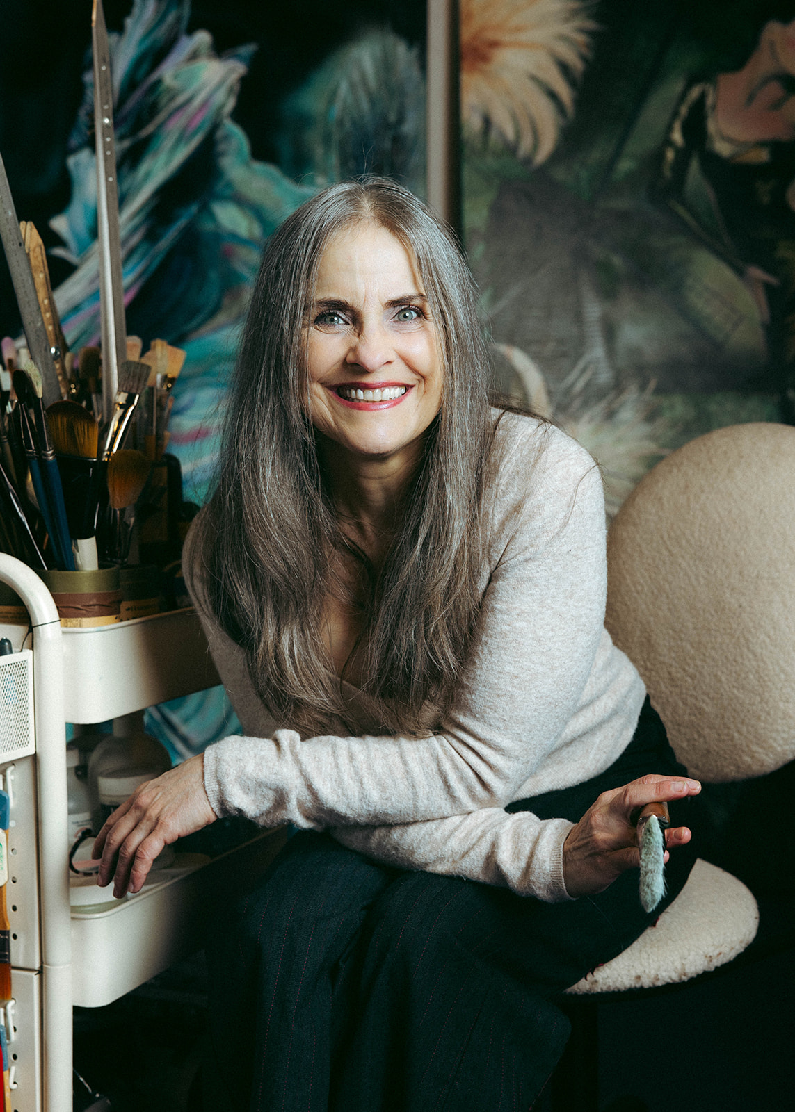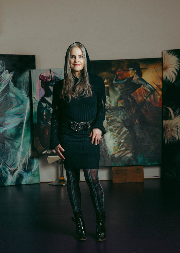 Based in Vancouver, Ninon paints from her studio inside The Underground Circus. Her style could be called layered figurative abstract, featuring rich colours, transparent layers, and enigmatic figures—graceful women, curious animals, set within dreamlike environments that blend natural and architectural forms.